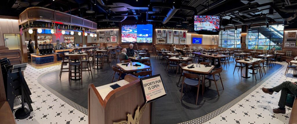 • 4, 32″ UHD displays above the bar